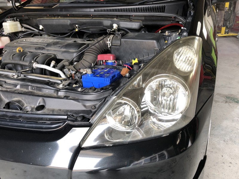 10ウィッシュ ヘッドライト磨き 入庫時 (運転席側)