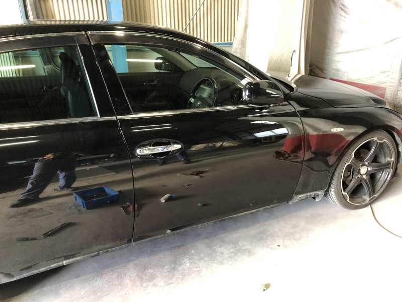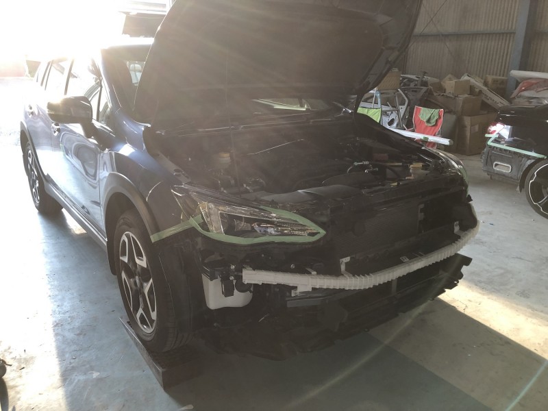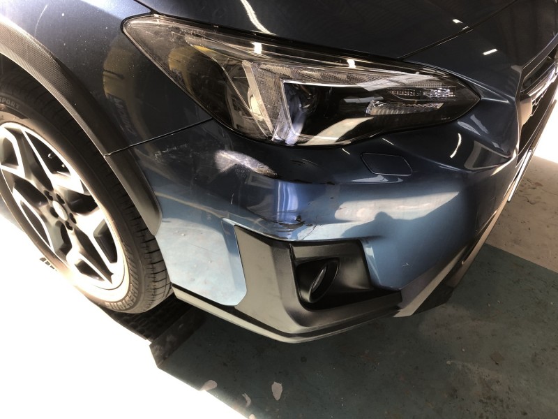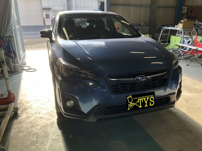作業はマークXのドア仕上げとXV フロントバンパー、ヘッドライト補修にて入庫しました。