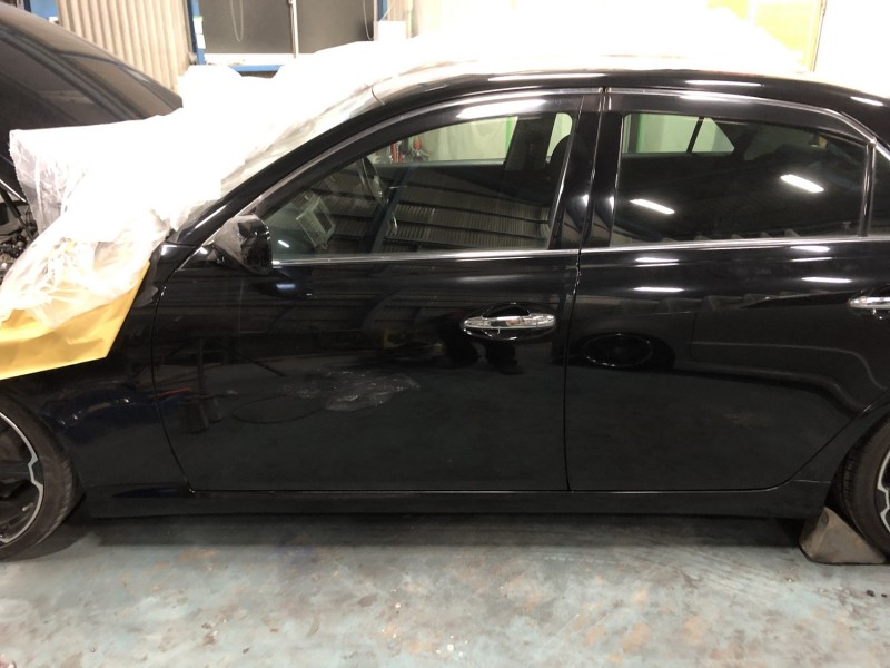 今日はマークXのエアロ磨きと純正サイドステップを取り付けしてました。