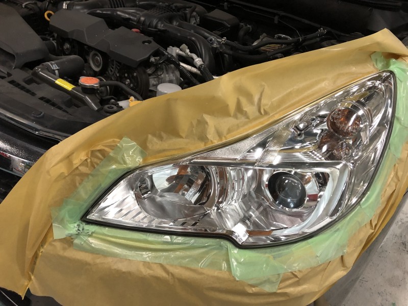 レガシィのヘッドライト磨きを施工しました。