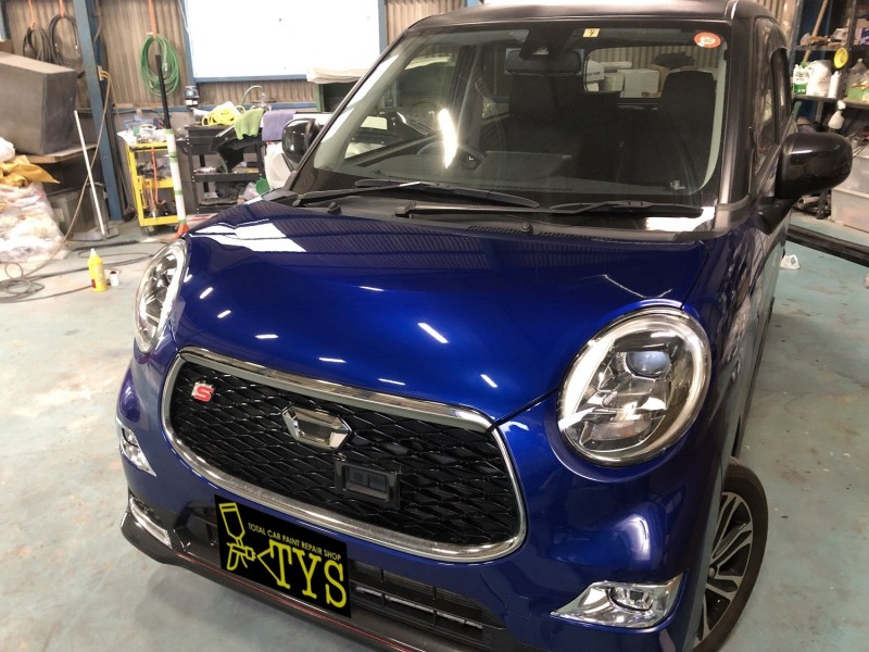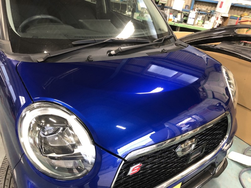 まず、朝一でベンツS600のヘッドライトを磨き、次にレガシィの洗車をして、車検依頼してたアルトが車検完了して帰ってきたので納車、次にフィットのヘッドライトブラケットを交換、次にキャストのボンネットを昨日塗装したので、仕上げ&取り付けと今日の作業の流れはこんな感じですね(^_^;)
