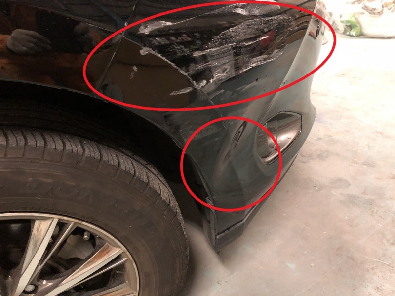 ラパン クイック補修、ハリアー フロントバンパー入庫