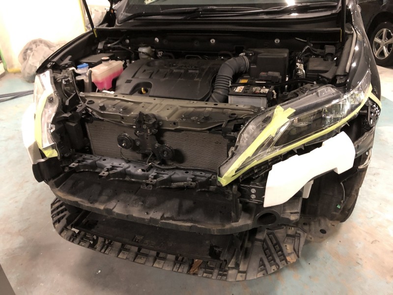 完了後、ハリアーのフロントバンパー補修にて入庫。