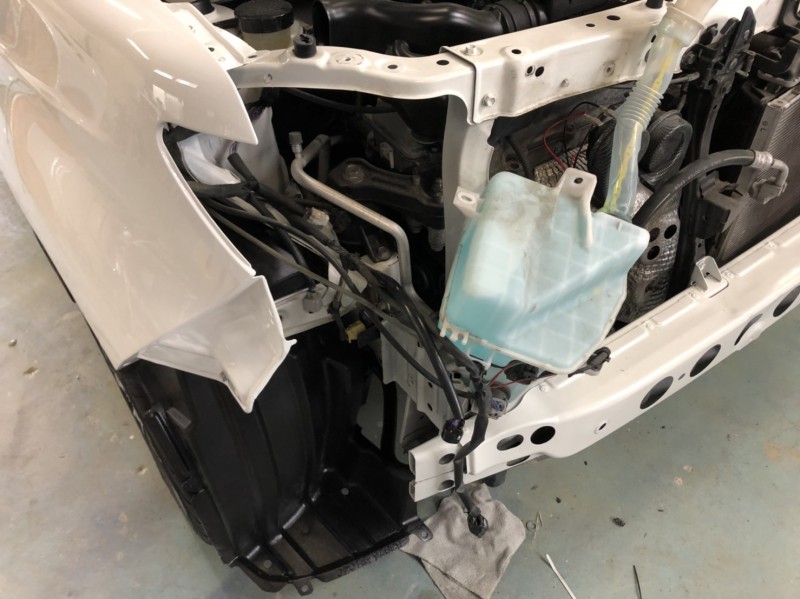 左右の出幅が20㎜くらいズレていたのでウォッシャタンクを取り外し、鈑金にて調整しました。