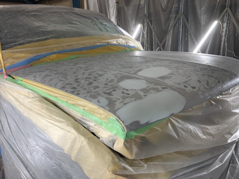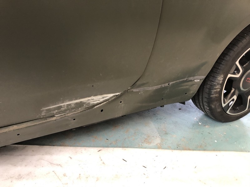 今日はサバーバンのボンネット板金とFIAT500の左クォーター・左ロッカパネル板金