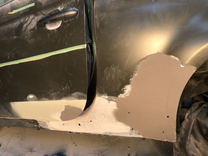 今日はサバーバンのボンネット塗装とFIAT500の左クォーター、左ドアの板金をしました。