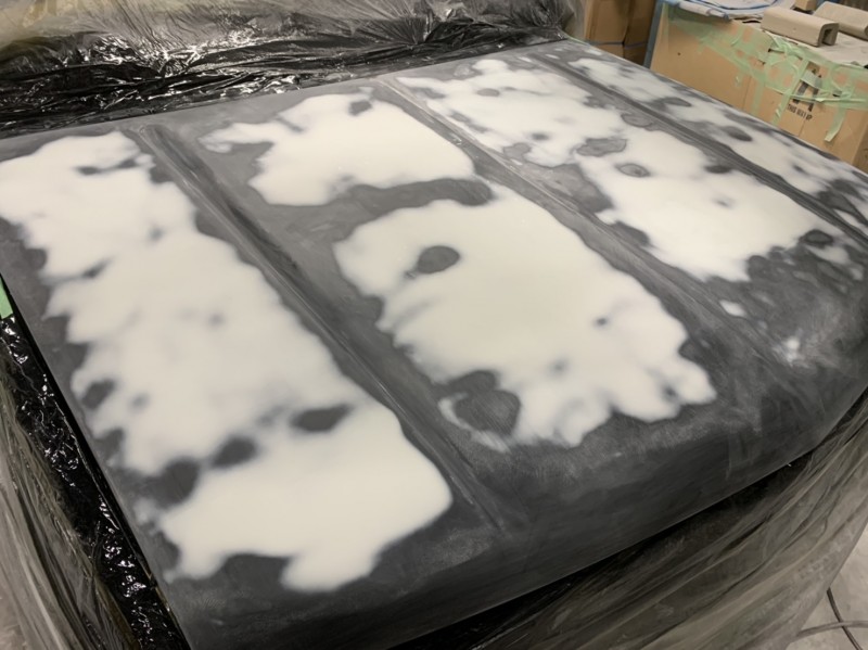 サバーバン ボンネット 板金 歪みとりのパテ処理