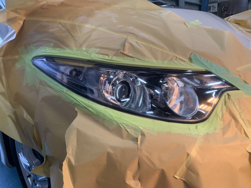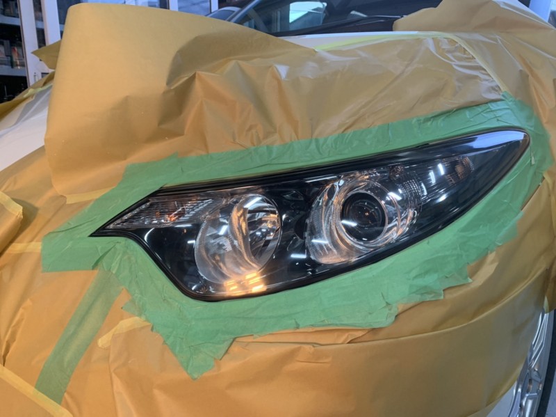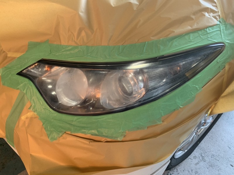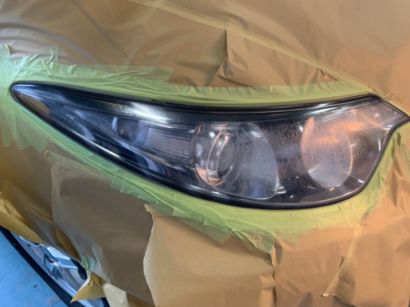 50エスティマ ヘッドライト磨き 入庫時 運転席側