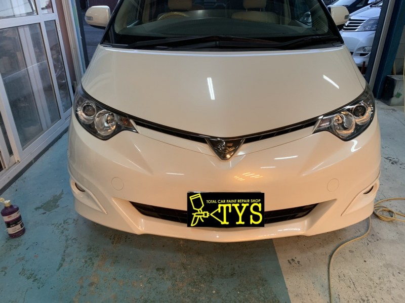 50エスティマ ヘッドライト磨き 完了 助手席側