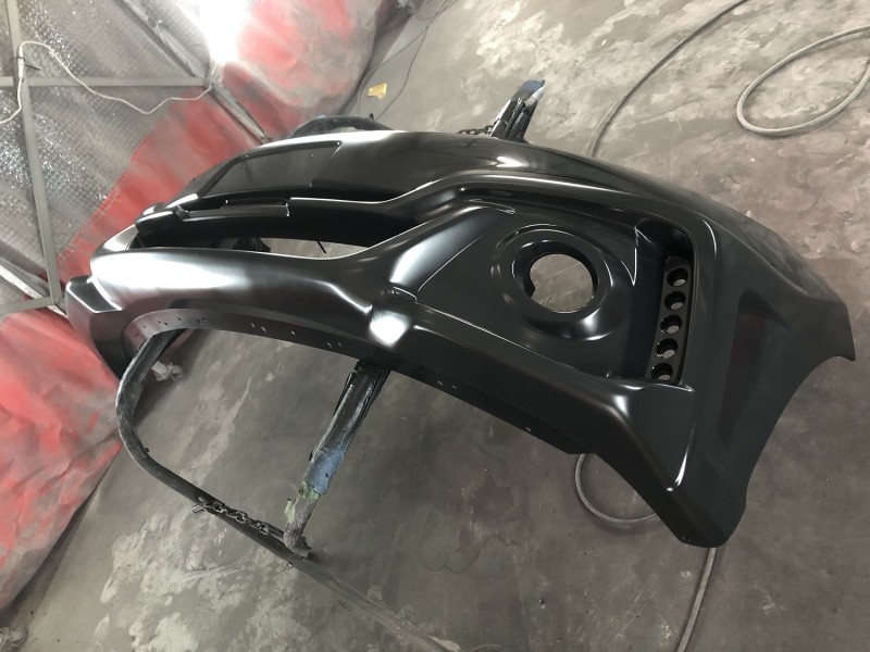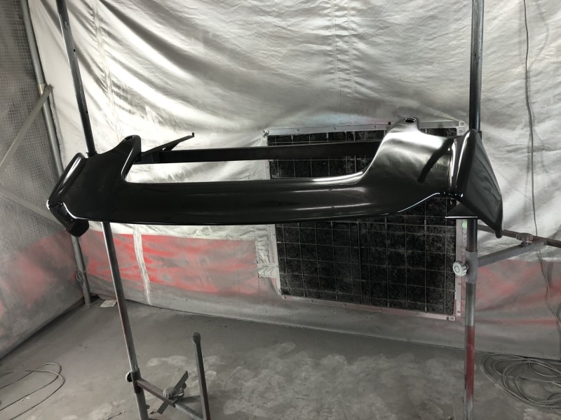 ノートのフロントグリル、フロントバンパー、リアウイングの歪みを取り、サフェーサー処理までいきました。