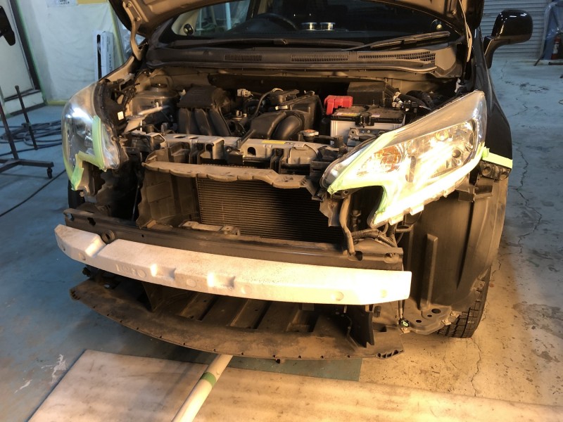 今日は、取引先に点検のために、車を預け、ノートのフロントグリル・フロントバンパーを外し、夕方は事故修理の見積もりと忙しい1日でした(笑)