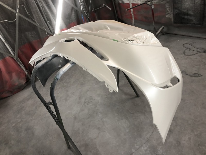 プリウスアルファ 再塗装完了 フロントバンパー(上から)