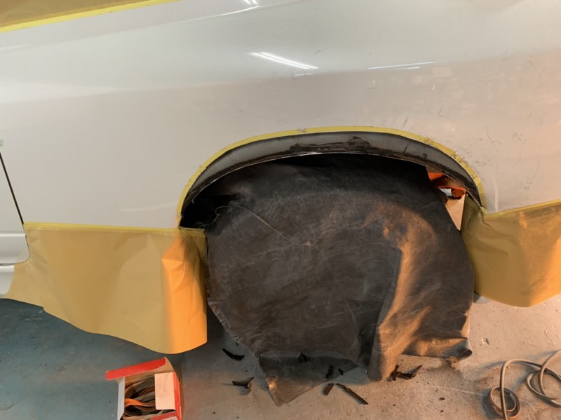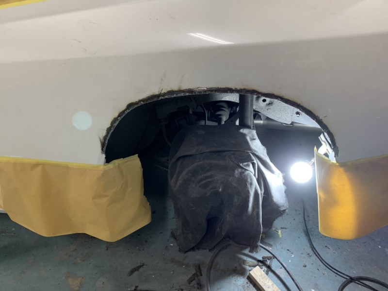シルビア リアフェンダー アーチ上げのためカットラインを出します。
