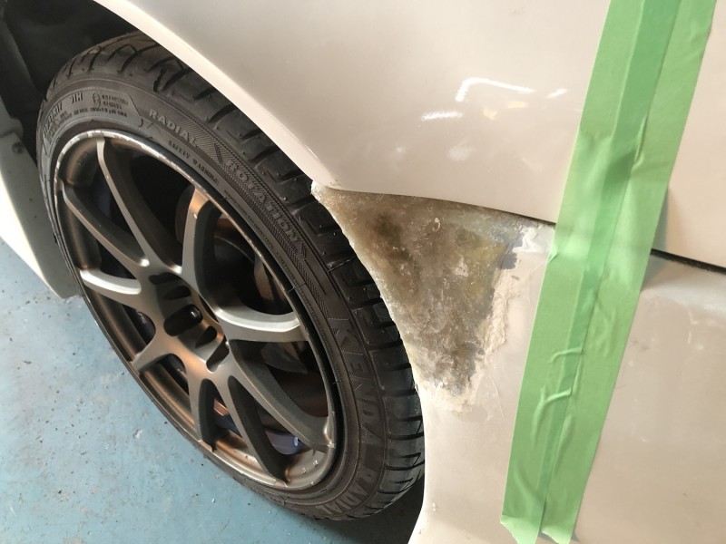 オーナー様より、フロントワイドフェンダーとフロントバンパーの取り付け部をナチュラルな形にしたいということで、FRPにて成形です(^O^)/