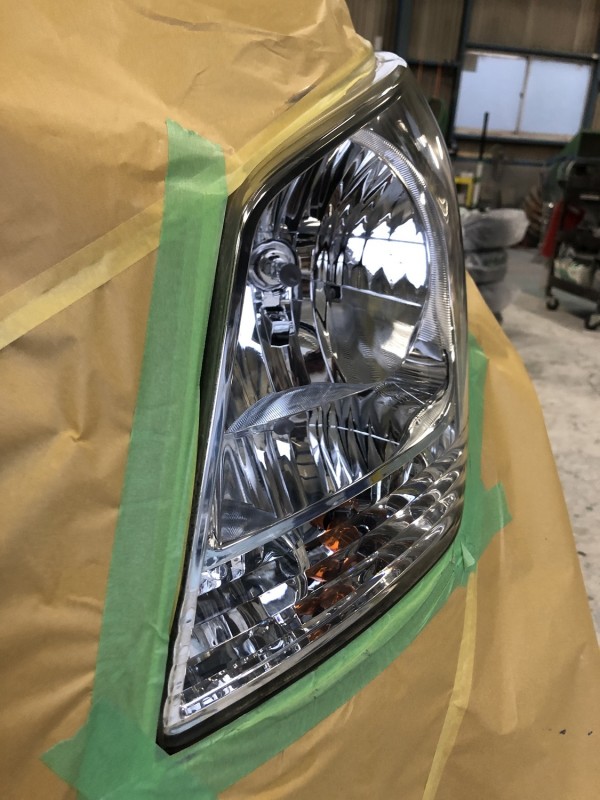 実際に現物を見ると、黄ばみ、くすみ、細かな傷が除去され、ヘッドライトがクリアになったんですけど写真でわかりづらいですかね(^_^;)