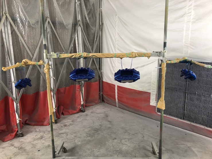 マスキング、足付け、脱脂をしてオリジナルカラーのブルーとクリヤーを塗装します。