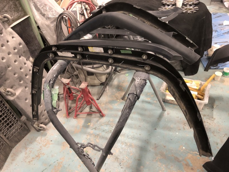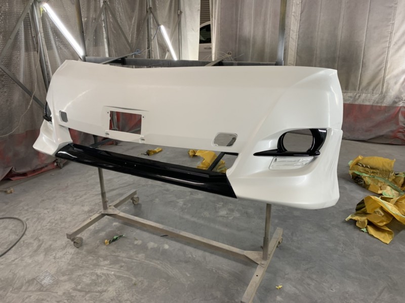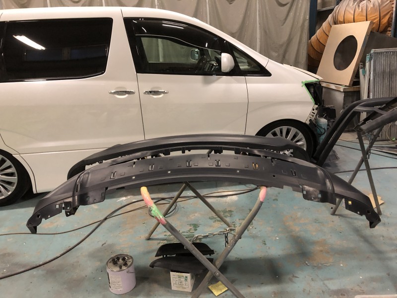 グランドチェロキー フロントバンパー、リヤバンパー部品外し及び塗装準備完了