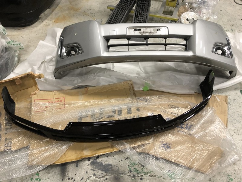 夜はエルグランドのお客様に来店していただき、フロントバンパー及びフロントスポイラーの塗装依頼をいただきました。