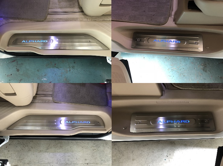 20アルファードHVにLEDスカッフプレート取付の依頼をいただいたので、投稿致します。