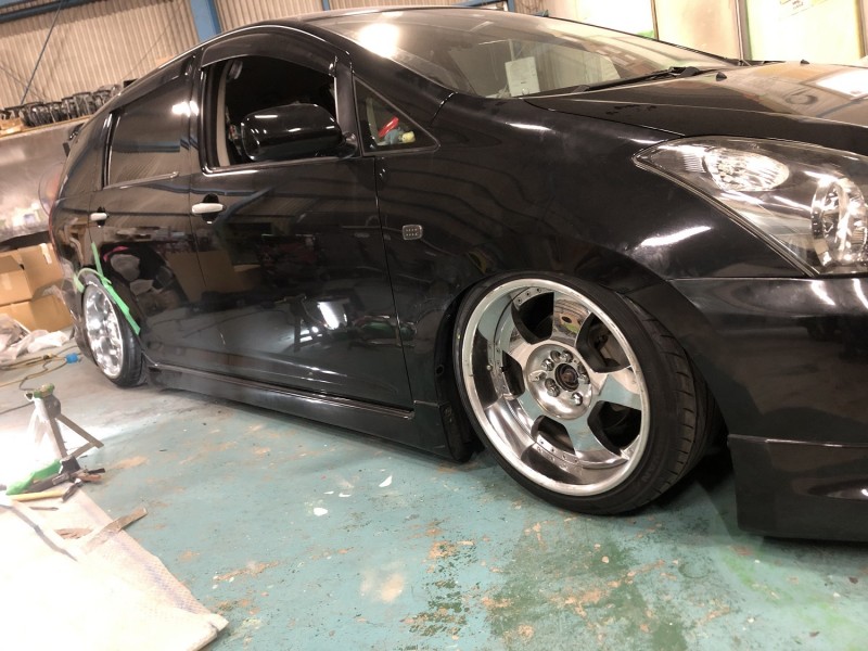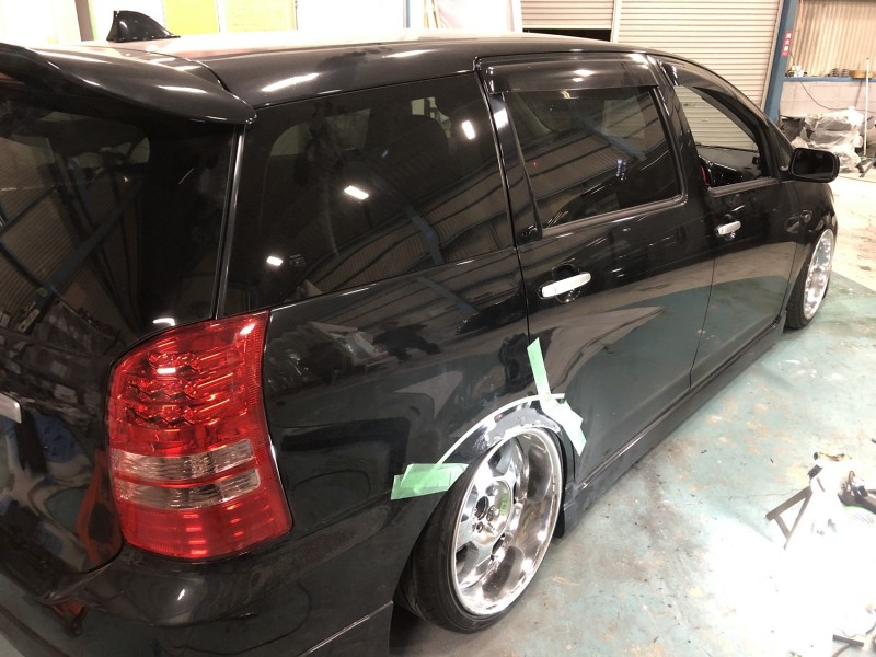 今日は先日のフロントフェンダー加工に引き続き、10ウィッシュ(エアサス)のクォーター加工をしてました。
