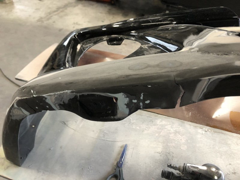 今日のフロントスポイラー補修、フロントフェンダー加工はここまでになります。