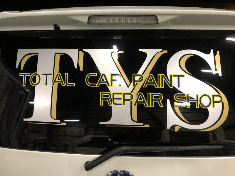 今日は無理を言って、TYSのステッカーを作成及び貼付を看板屋さんに施工していただきました。