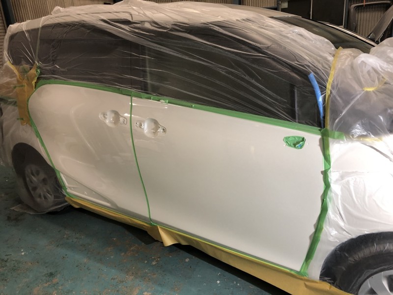 今日はトラックのヘッドライトレンズ交換と、ヴィッツフェンダー板金及びサフェーサー処理、新規お客様の見積もり、シエンタの納車仕上げとバタバタしておりました。