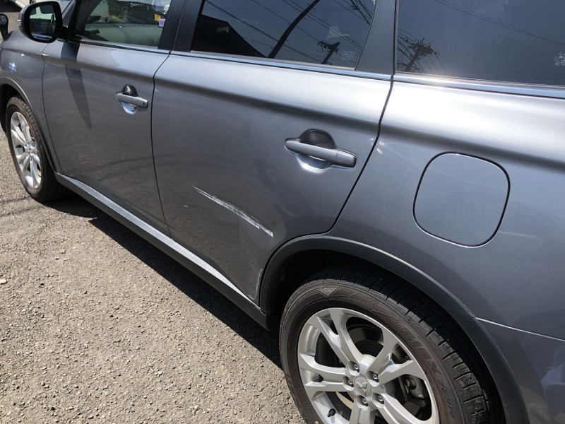 新規のお客様でアウトランダーの左リアドア付近損傷修理の見積もりを作成いました。