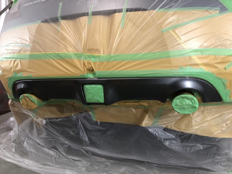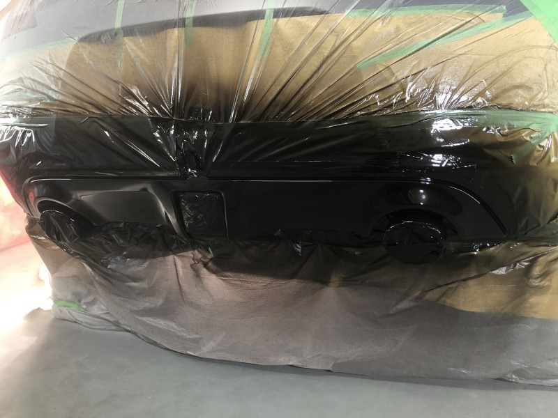 今日はフェアレディZのリアバンパー塗り分け塗装(ガンメタ → ブラック)をしました。