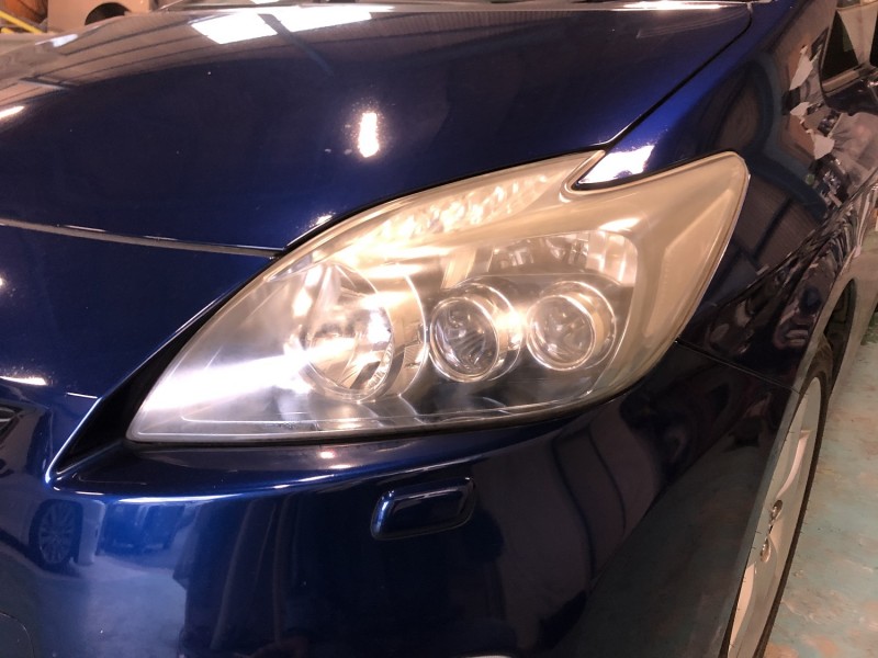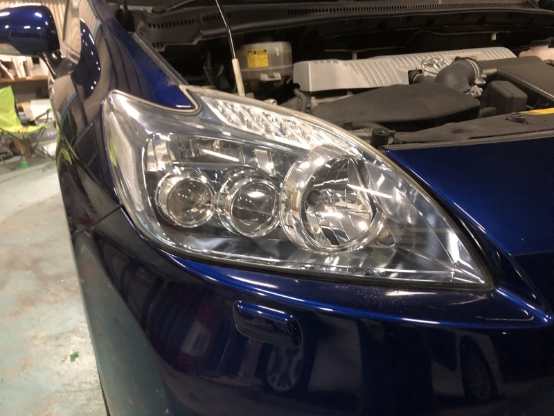 プリウス ヘッドライト磨き 施工完了 助手席側