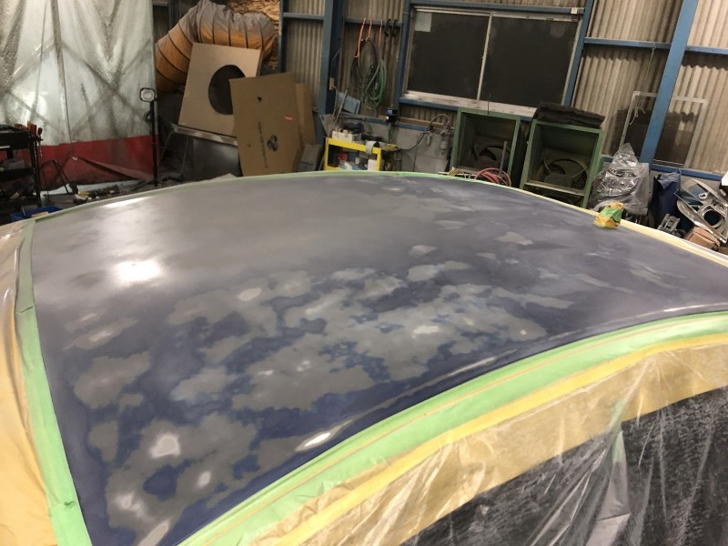 プリウス ルーフ クリヤー剥げにて研いでサフェーサー処理