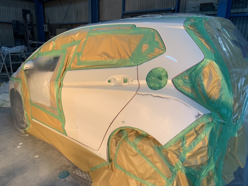 フィット リヤクォーター及びリヤドア塗装準備完了(フロント側から)