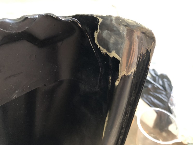 バイクのタンク ガソリンが漏れるということで半田で補修(裏側)