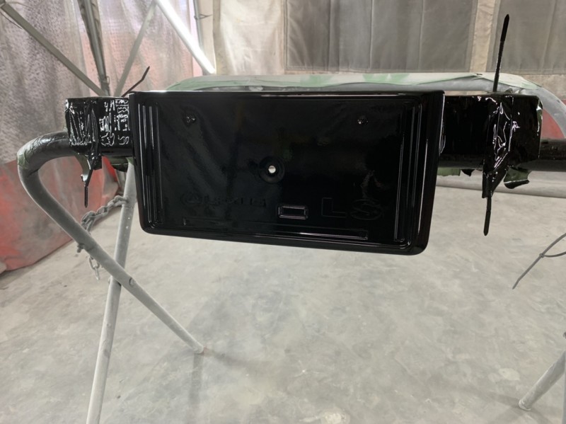 LS460 リヤガーニッシュパネル内ナンバー枠 塗装完了