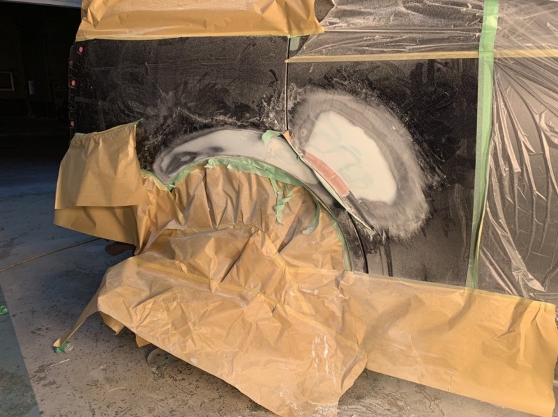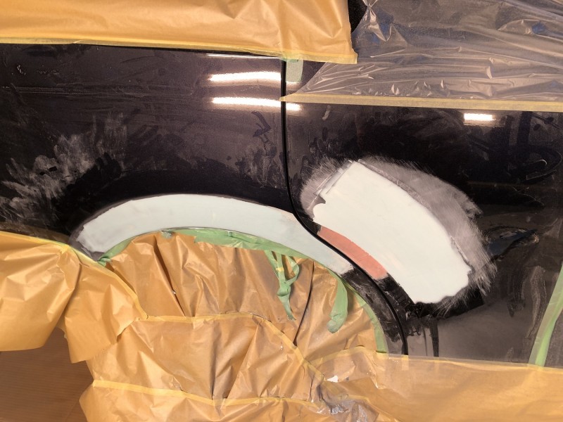 エスクァイア 右スライドドア・右クォーター パテ研ぎの様子