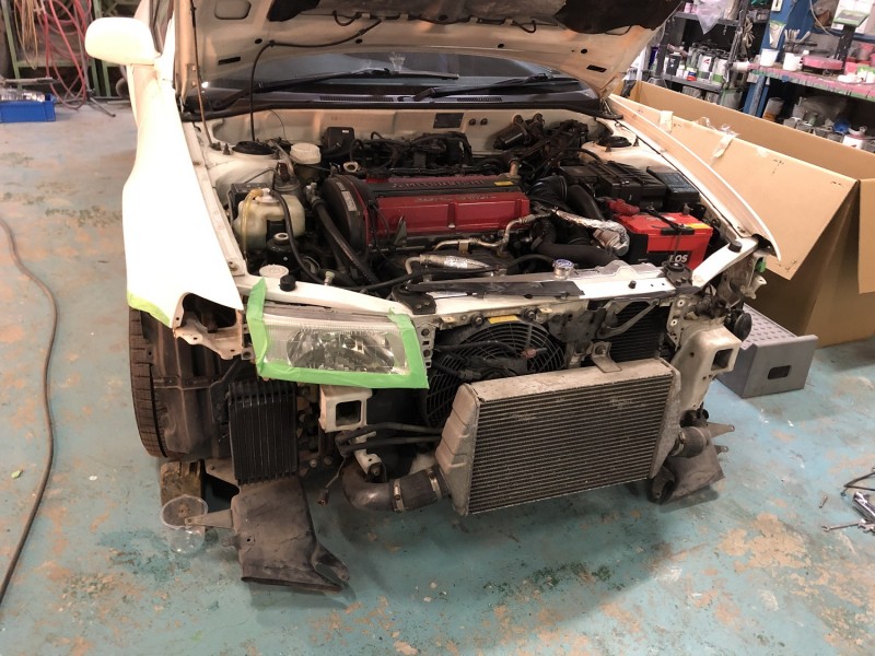 ランエボ6 保険事故案件 損傷状況確認のためフロントバンパー外し(車体)