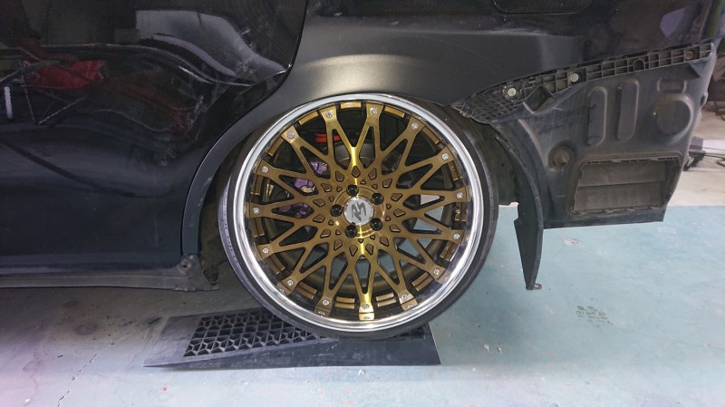 リアフェンダーを叩き上げ、リアフェンダーが干渉しないように加工していきます。