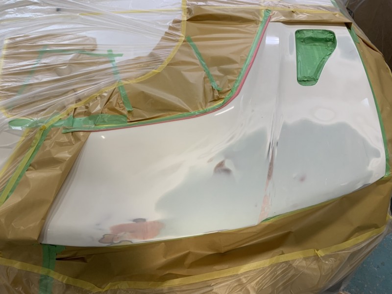 ランエボ6 ボンネットヘコミ サフェーサー処理完了