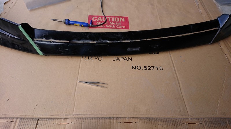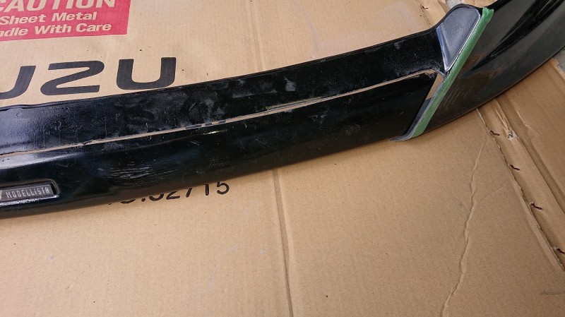 モデリスタのフロントハーフスポイラーをワンオフ化するために切断していきます。(笑)