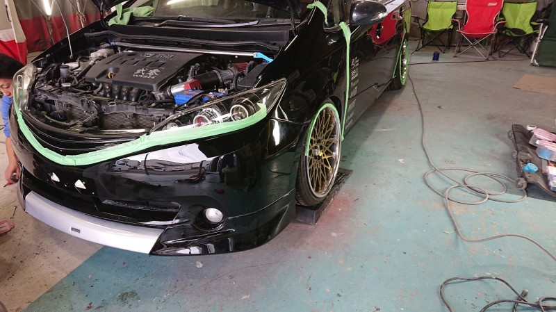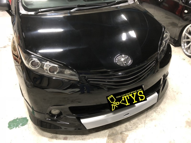 ウィッシュ ドレスアップ パート2(フロントハーフスポイラー加工、フロントバンパー、アイライン再塗装)