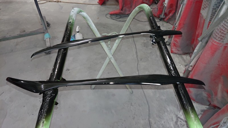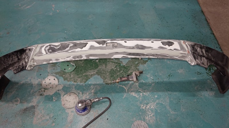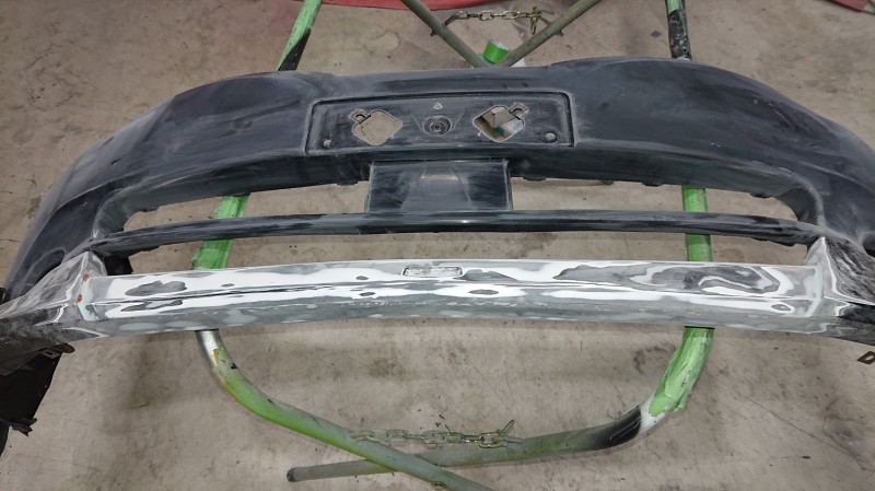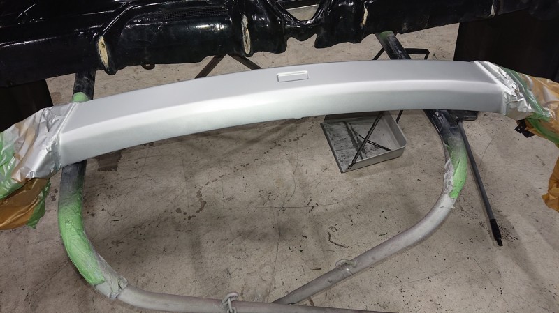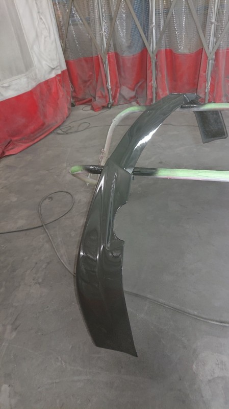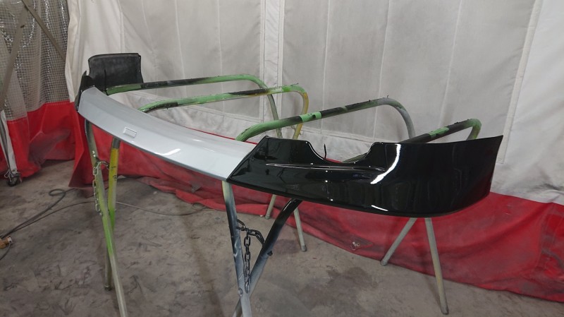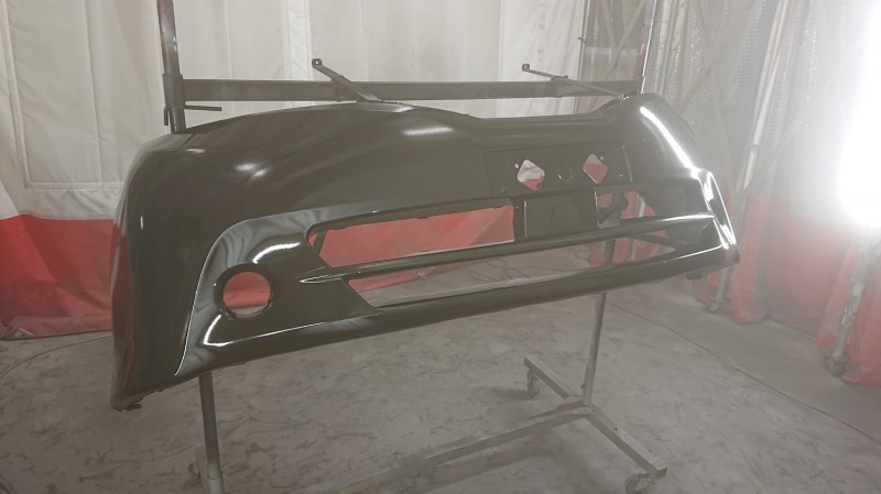 フロントバンパーもブラック202とクリヤーを塗装していきます。