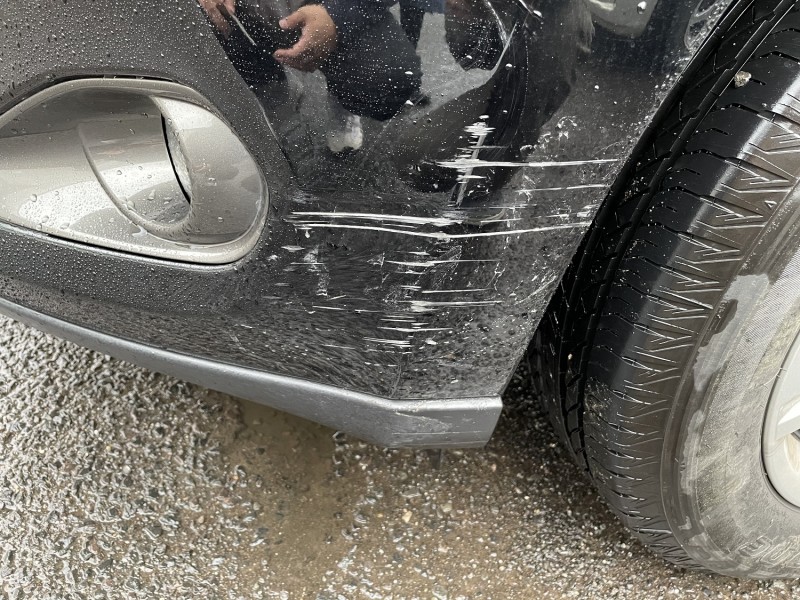 トヨタ ハリアー フロントバンパー 損傷具合をアップで