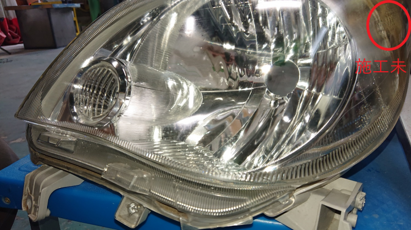 今回の導入した設備は表面を削って、蒸気でライトのレンズ自体と同じ素材を吹き付けていくという施工で、1回でかなりクリアになります。