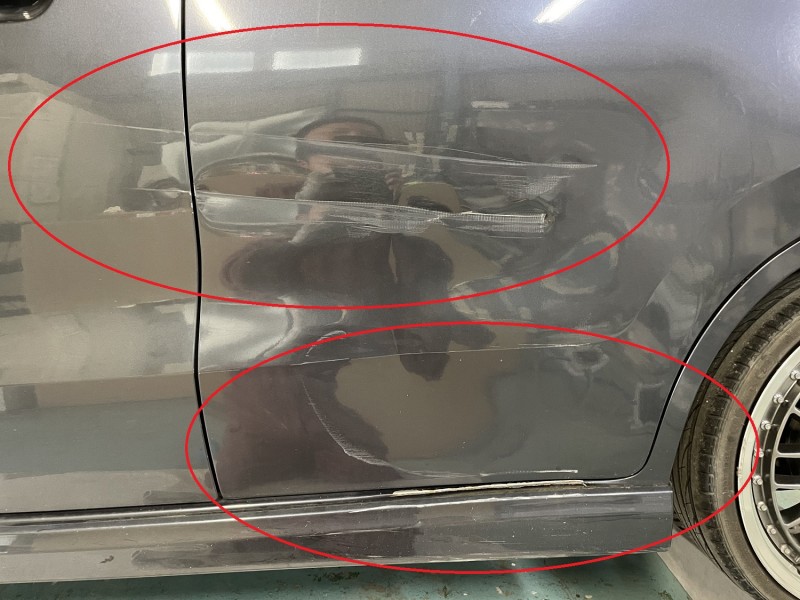 続いてフロントドアは板金にて修理を進めていきます。(^O^)