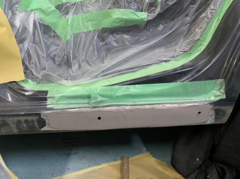 ロッカパネル板金後、パテ処理をします゚(´∀`)
