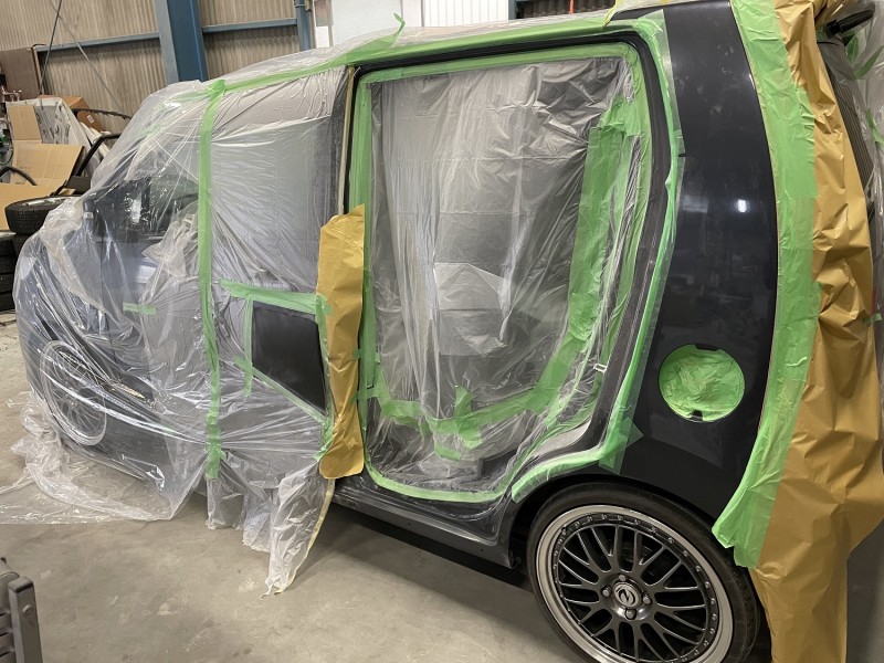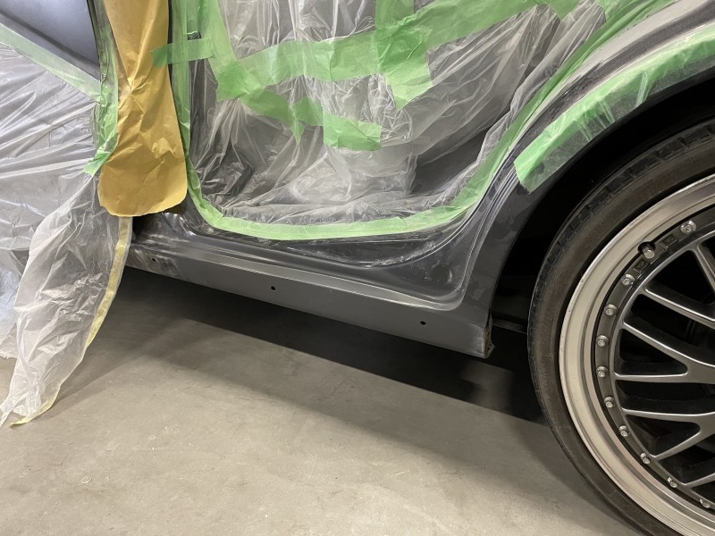 ワゴンR スティングレー ロッカパネル板金 パテ処理及びサフェーサー処理 全体