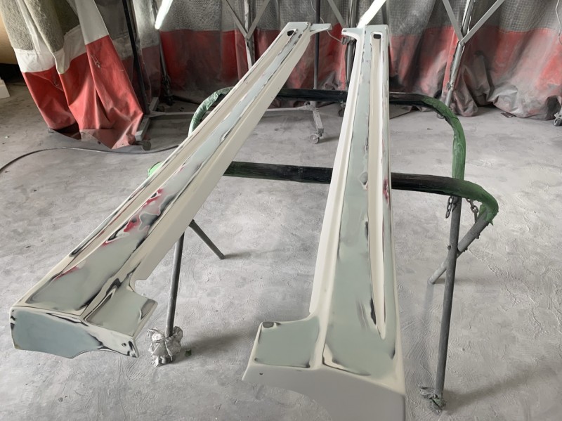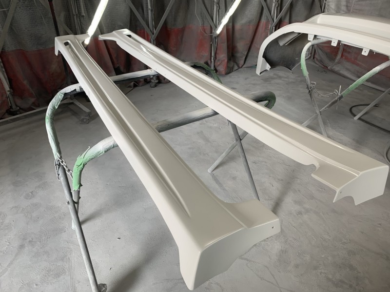 トヨタ ルミオンのフロントエアロバンパー、サイドステップの最終下地処理をしました。