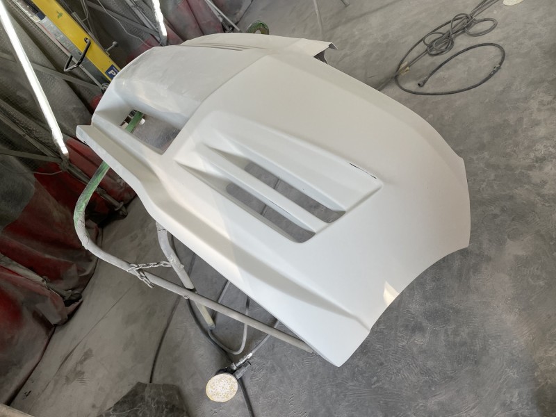 フロントエアロバンパー、サイドステップ共に塗り分けの要望があり、塗り分けのラインを作成すれば、オーナー様来店時に現車を調色カメラで撮って同色の調色をして塗装になります。(^_^)/