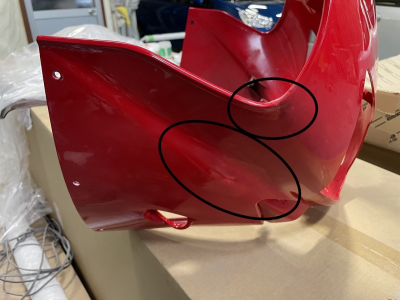 トヨタ アクアのフロントバンパー補修と前回サイドカウルを修理したバイクでメインのカウルも直して欲しいということで本日2件の入庫でした。