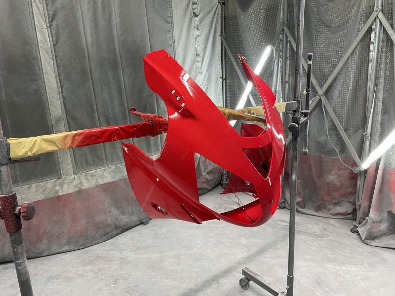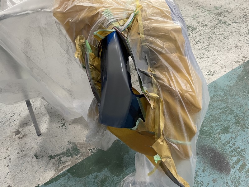 作業は昨日入庫したトヨタ アクアのフロントバンパー板金とバイクのカウルの板金、塗装をしました。